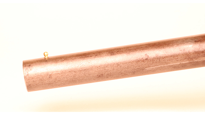 A little attention with my drill press and a hand tap emplaced an otherwise unadorned brass bead front sight secured with thread locker. Should you choose to follow that path, the project is well within the capabilities of anybody with rudimentary mechanical skills. Everything you might need is available on Amazon. Be sure to grind down the base of the front sight from within the bore to leave it unobstructed. With a small sanding drum, my Dremel tool accomplished that with ease.