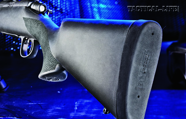As a nod to the tactical uses to which the SPS Tactical will be put, Remington has added a black, synthetic Hogue stock with a 13.5-inch length of pull. It’s a durable polymer platform enhanced by black “OverMolding” for improved control in nasty weather. The Hogue OverMolding is not only slightly tacky, but its resilience protects the user from errant “bump” noises. The Hogue stock also has what Remington calls a semi-beavertail forend that should facilitate steadiness no matter what type of rest (or hasty rest) is used. Because the goal is to provide a quality precision rifle at a good price point, the stock uses dual-point pillar bedding, which certainly works, rather than more expensive bedding systems.