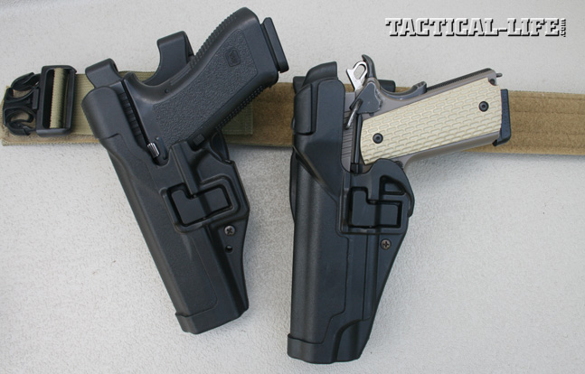 Today’s top retention holsters can help stop gun grabs without slowing the user’s draw. In the upcoming May 2014 issue of GUNS & WEAPONS FOR LAW ENFORCEMENT, author Mike Boyle writes, “It has been estimated that the number of officers that are disarmed, assaulted or compromised in some way by being disarmed is about three times as high as the number of officers killed in the line of duty. An inescapable truth is that law enforcement is an intimate, hands-on business, and officers regularly have to get inside personal space to control a subject. In close proximity, the opportunity exists for a subject to attempt a disarm.