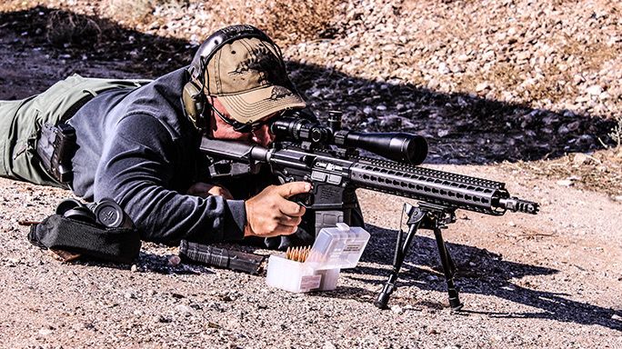 While specs and reputations can get you so far, it is always time on the range that tells the real story. Range day began on a windless sunny morning. To wring out the rifle’s accuracy, I added a Vortex Viper PST 6-24x50mm scope in Vortex rings. After a quick zero and target reset, rounds quickly began to fly downrange. Two major items became evident almost immediately. First was that there is a better-than-advertised trigger on the Specter. It is a perfect fit for a professional-quality DMR rifle. Second was the muzzle brake, which significantly helped reduce muzzle rise. These two factors allow for not only accurate shooting, but also quicker follow-up shots. It was very easy to stay on the Vortex scope and prepare for my next shot.