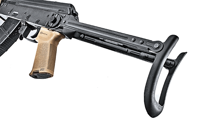 The under-folding stock is an excellent feature for those times when shorter is better, including when you may have limited storage capacity. With the stock folded, none of the AKM’s controls are blocked enough to prevent getting the rifle quickly into service. However, I discovered (for me at least) extending the under-folder stock is very much a two-hand proposition, with my dominant hand maneuvering the stock while my support hand retains control of the rifle.