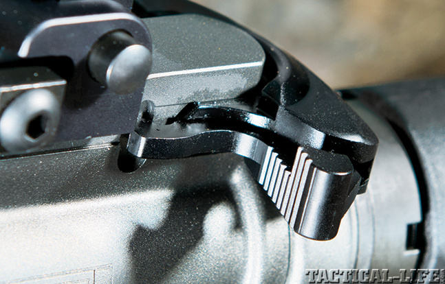 The new handguard covers a Barrett-made, 1-in-7-inch-twist, chrome-lined, hammer-forged, medium-contour barrel that is chambered in 5.56mm NATO with M4 feed ramps for excellent reliability. Capping the barrel is Primary Weapons Systems’ Triad flash suppressor. A large nut threaded to the barrel secures the two-position gas block. With no pins or screws to come loose, the gas block can be removed using standard tools. A nice touch is the fact that the rim of a cartridge can be used to adjust the gas system, with positions for standard firing, suppressor use and removing the system.