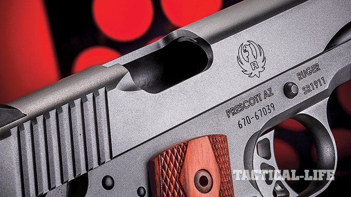 So, with extra features and an above-average fit and finish, how does Ruger keep the price so low? Alternative materials. If anybody in the gun-making business has a right to look outside the traditional 1911 box, it’s Ruger, a company founded on alternative production methods. John Browning designed the 1911 pistol in an era of very labor-intensive production techniques involving equipment that’s long outdated today, time-consuming processes and materials that were frankly inferior to what’s available now in certain areas such as heat-treating. In bringing out the company’s SR1911 and SR1911CMD, Ruger simply brought it up to modern times with modern processes and modern materials that eliminated a sizable chunk of the costs involved in doing it the old way.