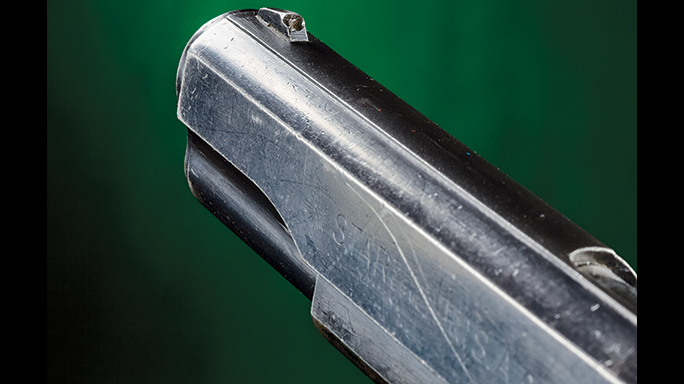 We also ran some off-hand drills on a combat target at 7 yards, firing the pistol with supported and one-handed grips. Thanks to its 1911-like ergonomics, the Star handled and pointed very naturally, and of the 36 rounds we sent downrange only four wandered outside the X and 9 rings. Of the approximately 100 rounds we fired that afternoon, we experienced a total of one malfunction, a stovepipe jam that was easily cleared. I must say that I was impressed with how well this this old warhorse performed and can easily understand why the Star Modelo B pistols were so popular.