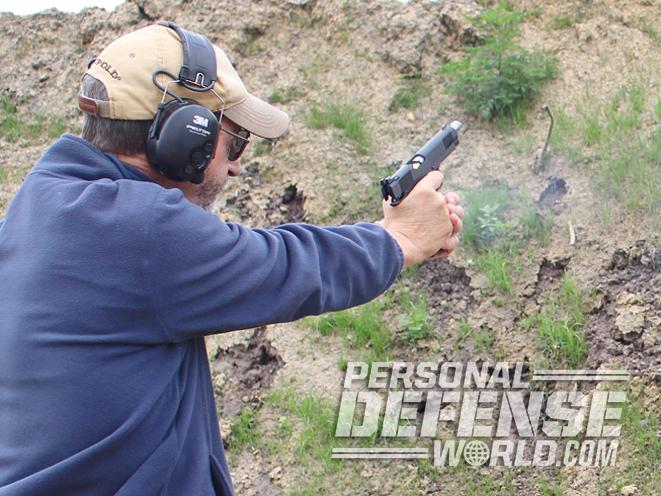 But it wasn’t just the pistol’s good trigger and sights that made it shootable; the controls were also very easy to operate. The manual safety was easy to flick on and off yet solidly locked in place. The extended mag release was easy to press and caused empty magazines to easily drop free of the grip. And the slide stop locked the action open on empty magazines every time, yet it was easy to depress and drop the slide when doing a speed reload. Finally, the gun functioned flawlessly with all of the ammunition used for the test.