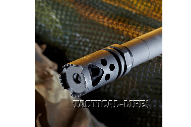 The Ehide finish is applied to all aluminum parts of the LAR-15 Hunter: the upper and lower receivers, the charging handle body, the triggerguard and the handguard. It does look like a low-resolution photo of real coyote fur. On my test sample, the pattern and color on the handguard and upper and lower receivers do not match or blend together. However, the only disruptions in the pattern on a particular part were at the transition point on the handguard between the oval section and the quad-rail. Otherwise, the pattern was neatly applied without smudges or overlapping in the photo. Steel parts, such as the controls, forward assist, receiver pins and barrel, are phosphated.