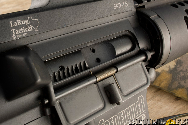 Of special note is this rifle’s .223 Wylde chamber, which was designed as a match chambering for semi-automatic rifles. It will accommodate both .223 Rem. and 5.56mm NATO ammunition. It is relieved in the case body to aid in extraction and features a shorter throat for improved accuracy. I’ve fired several five-shot 100-yard groups with Wylde-chambered ARs that, when measured center to center, were smaller than the bullet’s .224-inch diameter. In my experience, the best Wylde-chambered rifles are capable of 0.5 MOA groups all day long, with a wide range of quality ammunition.