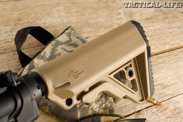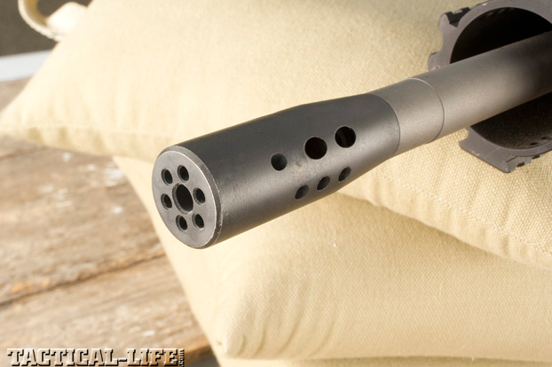 Other features include a winter triggerguard, which accommodates winter or tactical gloves, and a Hogue overmolded pistol grip. It also wears a low-profile, hidden gas block that looks very much like a PRI. A Badger Ordnance charging handle makes chambering a round quick and easy. Another nice touch is the safety lever: its acorn-shaped knob is easier to reach with my thumb than a mil-spec safety. The rifle’s barrel also wears an RRA custom muzzle brake with directional porting, which Eichler claims reduces muzzle lift and recoil. RRA LAR-15 Fred Eichler Series Predator rifles are available with either the fixed RRA Operator Stock or the RRA six-position Operator CAR Stock.