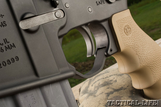 This rifle comes equipped with a two-stage, chromed RRA National Match trigger with a Parkerized non-reflective surface on the trigger shoe. The first stage pulls 2.25 pounds, and the sear breaks cleanly at 3.75 pounds. There’s a small amount of rollover between the first and second stage, but it’s smooth and consistent. The trigger’s feel strikes an excellent compromise for an all-weather hunting trigger on an AR.