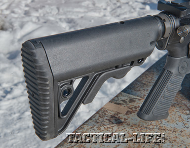 The Tactical CAR was replaced with an Operator CAR stock, which features a better cheekweld, a battery compartment that’s accessible with the push of a button, two QD sling mounts on either side, and six positions for a solid fit. Along with a winter triggerguard, RRA’s overmolded pistol grip was attached. This pistol grip keeps the feel of an A2 grip but with a softer rubber cover. The forged A2 receiver contains RRA’s excellent two-stage trigger. I had installed an ambidextrous safety and magazine release for fast magazine swaps. A BCMGunfighter Charging Handle from Bravo Company with a medium latch rounds out the package. The rifle is sent in a nice hard case along with one PRI (Precision Reflex) 25-round magazine.