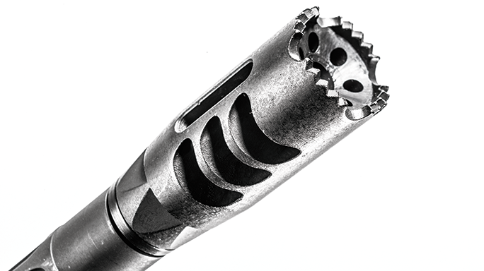 Even though the NSP isn’t a fancy gun, it’s well made and has some nice features. The upper and lower receivers are forged from mil-spec 7075-T6 aluminum that is then hardcoat anodized. The flattop upper has a full-length Picatinny rail for mounting optics. There’s also a rail on top of the gas block that will accommodate a front sight or a miniature light/laser. The non-free-floating, 16-inch barrel is fluted to dissipate heat and help reduce weight. The barrel is also hand-lapped at the factory so it doesn’t need to be broken in. RRA states that the rifle will deliver 1-MOA accuracy with appropriate loads, which is very good since the NSP does not have a free-floating handguard. The muzzle end has a Rock River Operator muzzle brake that is very effective. Even though 5.56mm NATO loads don’t kick much, the brake’s recoil reduction is noticeable when shooting quickly.