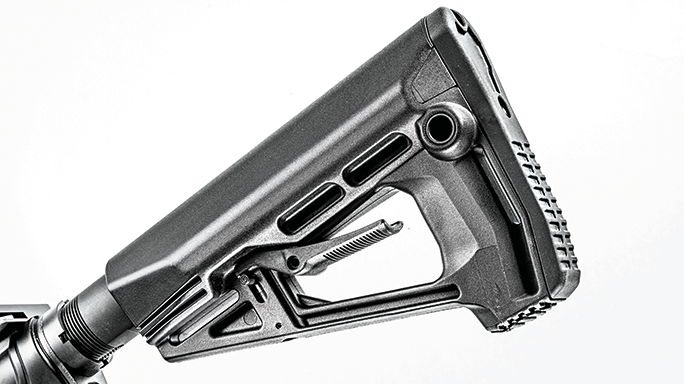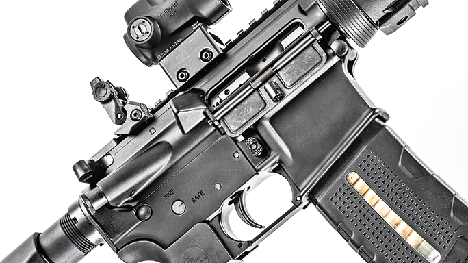 The LAR-15 NSP’s fire control system is also top-notch. The carbine’s two-stage trigger breaks cleanly at 4.5 pounds. That is quite good compared to the 7-pound triggers on many other ARs. In addition, the magazine release, safety selector and bolt release all operate crisply and positively.