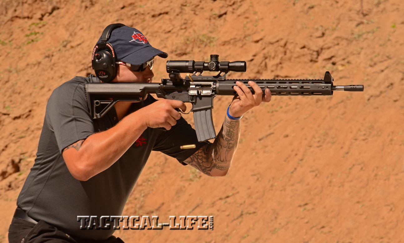 A mid-length gas system is used, which puts the gas port about 9.5 inches forward of the chamber. This tends to smooth out recoil—that is, of course, subjective and depends on how the shooter perceives recoil—and reduces the speed of the bolt, decreasing stress on the bolt carrier group. That improves the rifle’s reliability compared to a carbine-length system.