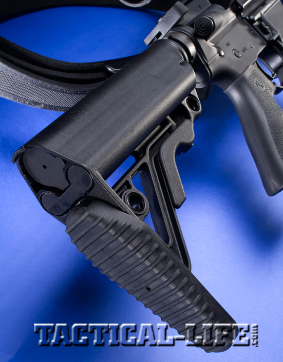 RRA offers two buttstock options for the R3 Competition. My test gun came with RRA’s Operator CAR stock installed, which is adjustable to six length-of-pull positions. The other stock option is RRA’s fixed Operator A2. The CAR stock has a rubber buttpad that slides down to reveal two storage compartments for batteries or other small items. It is a comfortable stock that provides a wide surface for a good cheekweld. The stock also has two quick-detachable (QD) swivel sockets for slings if you want to put a sling on the gun. You will need to get an aftermarket swivel to attach to the front of the gun, though.