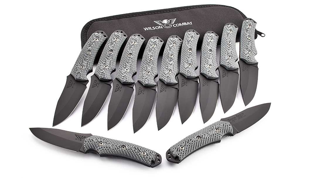Called the C.U.B. fighter, this is a mid-size belt knife. It is small enough for everyday tactical use, but big enough for most larger field and tactical chores. Some of the knife’s features include a matte bead blasted 154-CM USA-made stainless steel blade (RC-58) and machined 3D G-10 contoured handle. The design of this knife is a custom collaboration between Steve, who is the owner of Rock River Iron, and Wilson Combat.