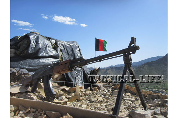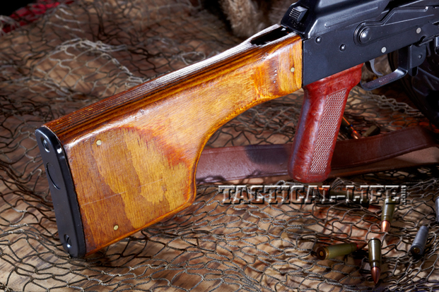 So how exactly does the RPK differ from the AKM? First and foremost the RPK features a barrel with a thicker diameter and longer, 23-inch length (versus the more common 16-inch barrel of the AKM). To facilitate prone firing, the barrel is fitted with a muzzle-mounted folding bipod. The RPK’s buttstock is modified with a clubfoot shape at its heel, to facilitate using the support hand to cup the buttstock into the shoulder and adjusting the weapon’s point of impact when firing. Also, the RPK’s oversized forend is much larger than the standard AKM’s, likely to help offset the effects of barrel heat from prolonged firing.