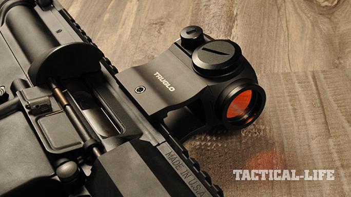 The Tru-Tec sight is shock resistant to 1,000 Gs and is water- and fog-proof as well. It comes with low and high mounting bases, and I obviously chose the latter for the LAR-9. The Tru-Tec is priced at $221 from TruGlo, but I am sure you can find it in the wild for less than $200. In short, it’s a great red-dot sight; it was spot on, and I didn’t experience any problems.
