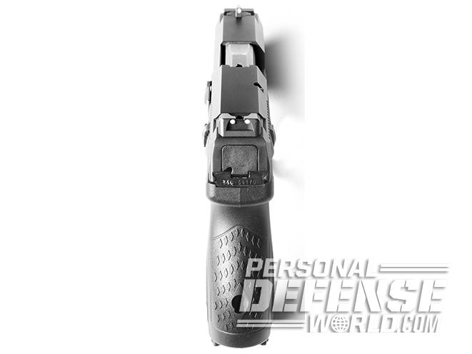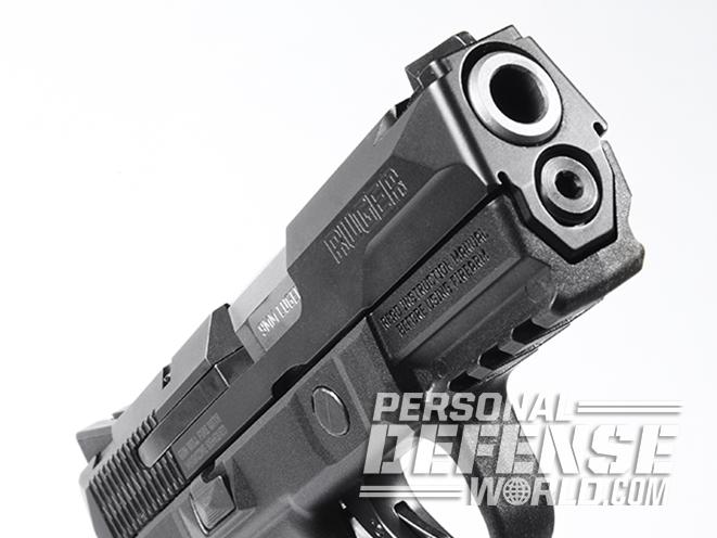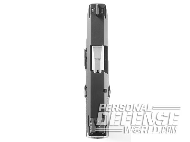Other important features include the sturdy, one-piece, stainless steel chassis. It contains the frame rails and fire control mechanism. The chassis is surrounded by an equally sturdy grip frame made of high-performance glass-filled nylon that maintains its dimensions under all environmental conditions and also provides a sturdy and consistent mount for accessories. Also, the external surfaces of the slide are nitride coated. This increases the pistol’s ability to resist corrosion and produces a non-reflective matte black surface that reduces glare.