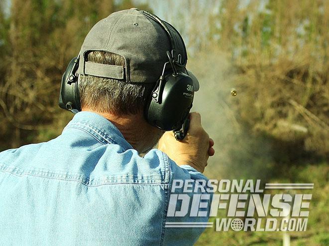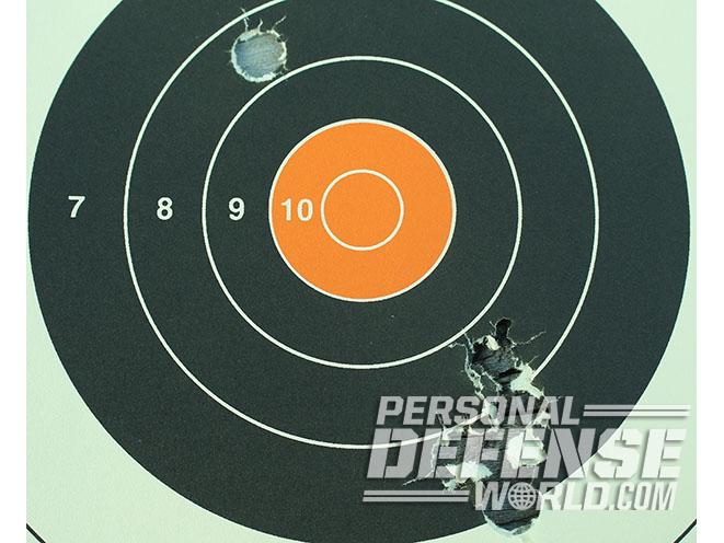 To test the pistol’s accuracy, I fired three 5-shot groups with each load at 25 yards. The bench testing indicated that the SR1911 Target tended to shoot tighter groups with the Black Hills and Freedom Munitions loads. Overall, groups fired from the bench were 3 to 5 inches in size. Some groups would have been smaller, but there was a tendency for an occasional flyer to open up the groups. I measured the velocities using a Competition Electronics ProChrono chronograph. The Black Hills ammo was the fastest load, and the most powerful was the Sig Sauer ammo, which left the barrel at 867 fps and generated 384 foot-pounds of energy at the muzzle.