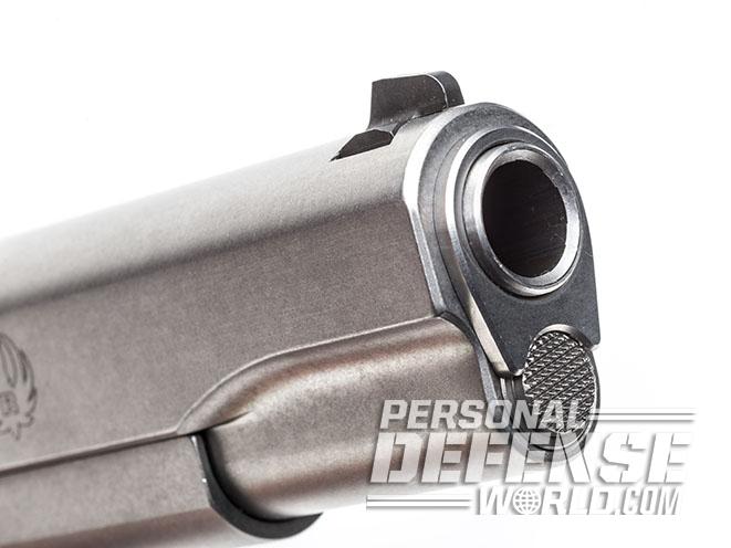 In addition, the SR1911 Target has features that are only found on Ruger 1911s. The Target model uses an ultra-light titanium firing pin to help prevent an unintended discharge if the pistol is dropped. In addition, if you’ve ever had a 1911 plunger tube take off for parts unknown (and I have), you’ll appreciate the SR1911 Target’s integral plunger tube, which cannot be separated from the pistol like the older-style staked tube can.