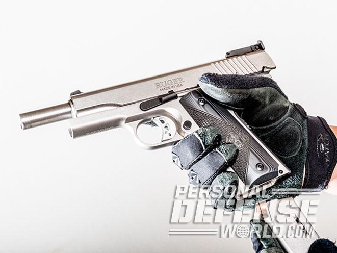 Ruger outfits this SR1911 variant with a skeletonized target trigger as well as a lowered and flared ejection port.