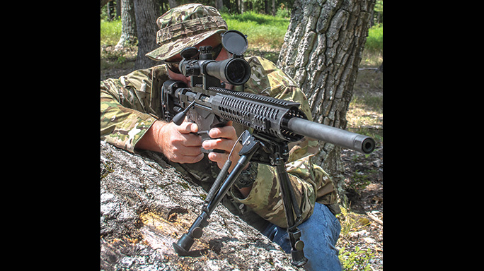 To test the rifle, I used various loads from Black Hills, Federal, Winchester and Hornady. The Precision Rifle’s 20-inch barrel produced velocity readings in the low 2,600-fps range with the 168-grain loads. In essence, the 20-inch barrel maximizes portability and handling while maintaining 7.62mm ballistics and terminal performance. As can be expected with quality ammunition, velocity figures measured by an RCBS chronograph deviated very little from round to round. The Precision Rifle produced 1-MOA or better groups with several different ammunition brands—an important logistic consideration.