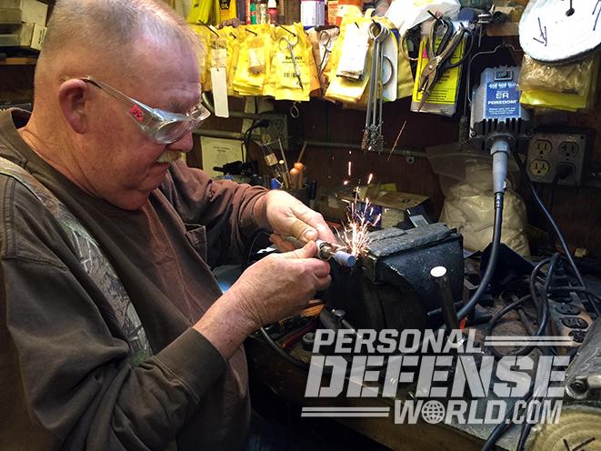 Denny works on more S&W Model 686s than anything else these days. J-Frames are second in popularity among customers, with N-Frames coming in third. Denny gets a lot of K-Frame Model 19s, too. He works on about 350 to 400 guns a year. As you might have gathered, he confines his work to double-action Smith & Wesson revolvers.