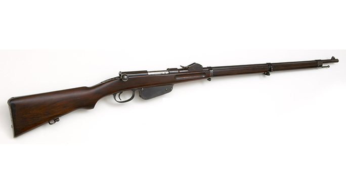 Designed by Ferdinand Ritter von Mann-licher, the Model 1888 was the first small-bore rifle adopted by the Austro-Hungarian army. It utilized a straight-pull bolt action and a five-round magazine that was loaded with a clip that was inserted into the magazine en bloc and fell out of an opening in the magazine housing when it was empty.