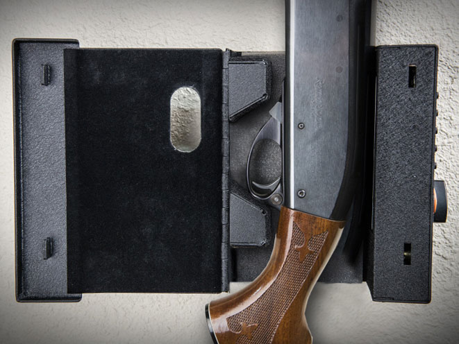 The Shotgun Solo-Vault is capable of securing a majority of pump, semi-auto, double barrel and over/under shotguns. It has a 14 gauge steel frame with dual internal locking points, as well as a reversible left or right opening door. In addition, it’s easily mountable on a wall or vehicle and it accommodates left & right handed shotguns.