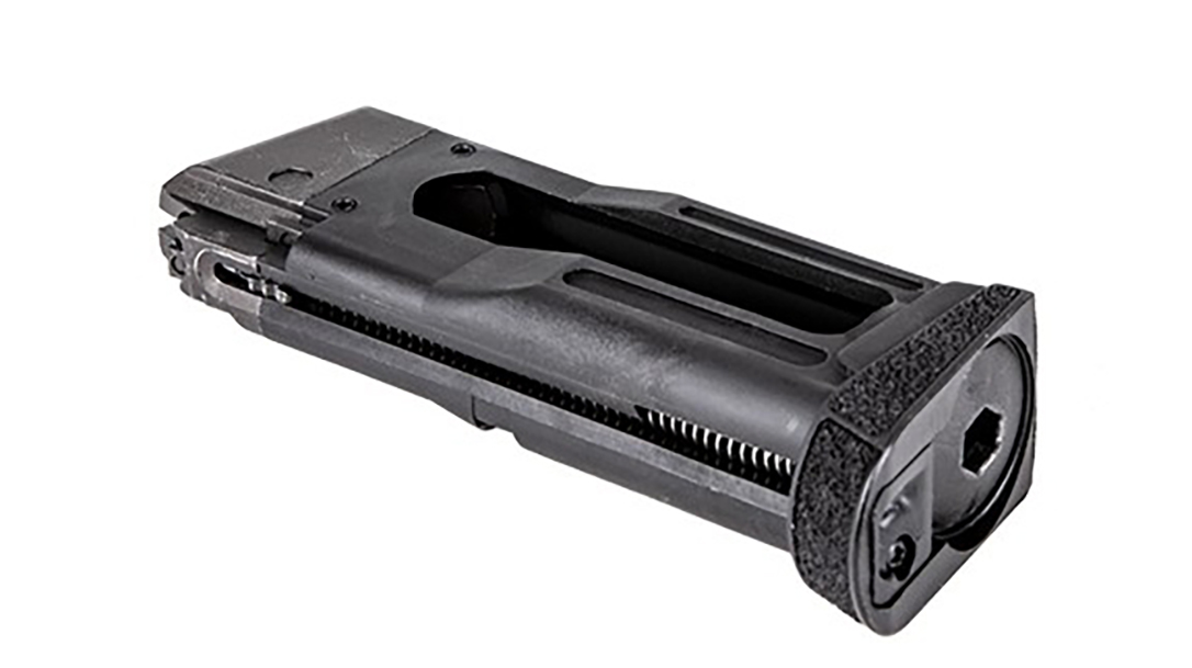 The P365 BB pistol is designed to fit in available P365 holster systems for easy practice of efficiently drawing from concealment. The 12-round drop magazine holds 4.5mm (.177 cal) steel BBs and also houses the 12gr CO2 cartridge for fast reloading.