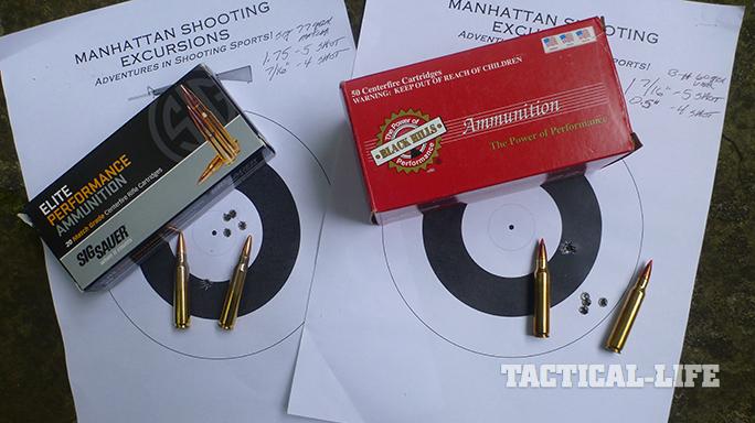 The M400 Elite showed very respectable accuracy using the match ammunition, especially considering that slim M4-profile barrels have lots of whip and are not known for their accuracy. The Sig OTM and Black Hills V-MAX loads created 1.85- and 1.72-inch groups on average, respectively. This performance is certain to improve if my sample rifle’s trigger weight was within Sig’s specs of 5.5 to 5.9 pounds instead of 7.5 pounds. Moreover, nearly half of the Sig Sauer and Black Hills match loads turned in 1-inch or better three- to four-shot groups with an annoying flyer widening the group. Discounting one flyer each, the M400 Elite’s best four-shot groups were 0.44 and 0.5 inches with the Sig Sauer and Black Hills ammo, respectively.
