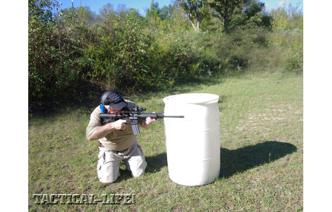 Starting as models similar to mil-spec carbines in many aspects, SRPs have a number of special enhancements, beginning with ambidextrous magazine releases, spring-loaded upper and lower receiver tensioning pins, integral QD points on lowers, beveled/flared magazine wells and a pin inside the barrel extensions supporting extractors in the event of case blowout/separation failure. The right end of the SRP’s selector lever has a small tab providing tactile identification of the selector’s position.