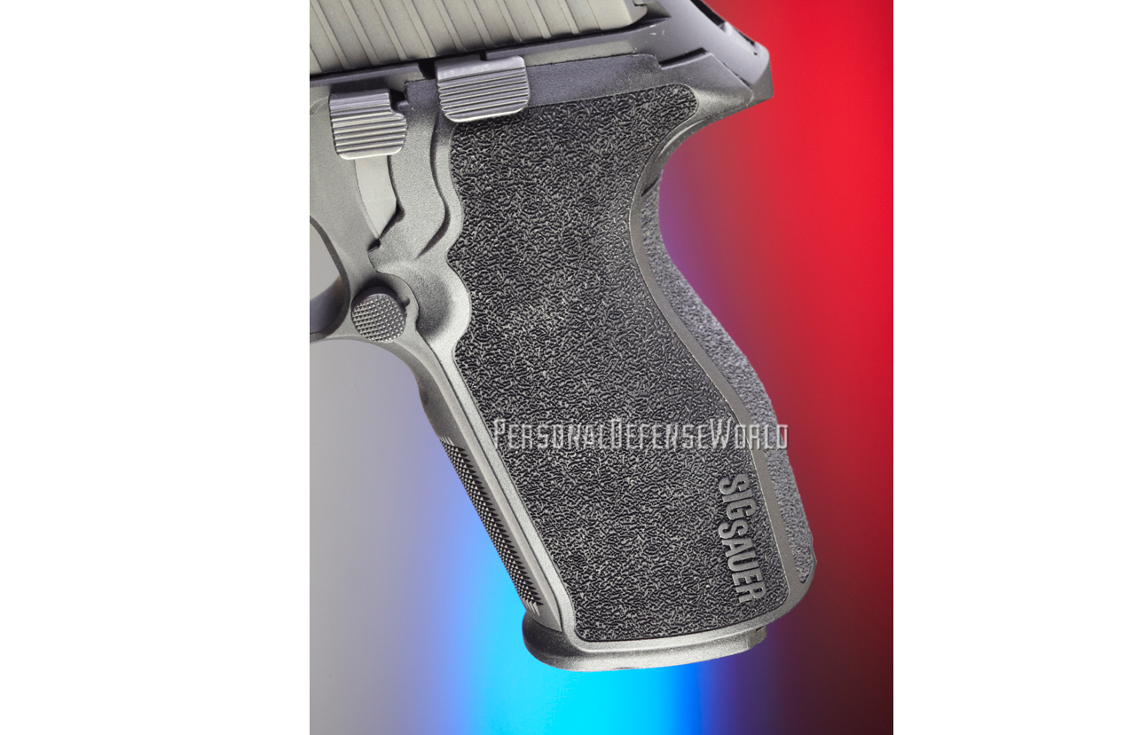 I chose to evaluate the P227 Nitron, and the pistol arrived inside a lockable, plastic carrying case that had a foam/rubber liner in the bottom half with cutouts for the pistol and the extra 10-round magazine that was included. There was also an owner’s manual, warranty, product registration form, a safety padlock and a small container of Mil-Comm TW25B lubricant/protectant. A cursory inspection of the exterior of the pistol revealed Sig’s renowned excellent workmanship—there were no tool marks or blemishes on any metal surface. The Nitron finish on the slide and the anodizing on the receiver were well done, leaving the entire handgun a non-reflective, dark charcoal gray color. The black, one-piece grips are well proportioned. The stippled side panels and backstrap form a beveled magazine well. The exposed grip frame of the frontstrap is finely checkered and has a dished-out area just below the triggerguard that provides for a high shooting grip.