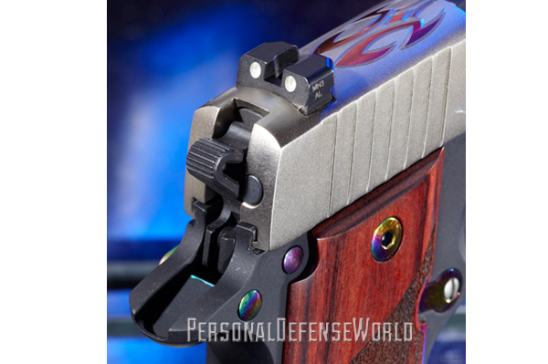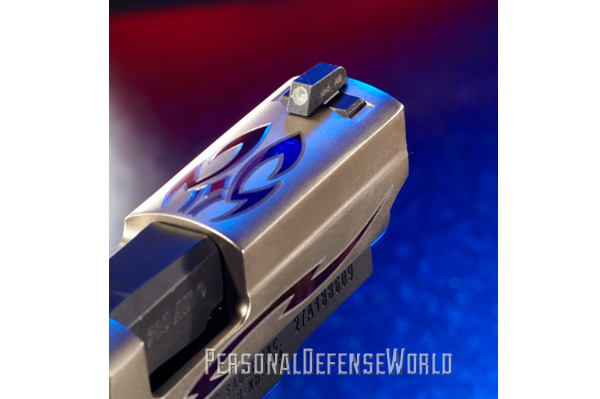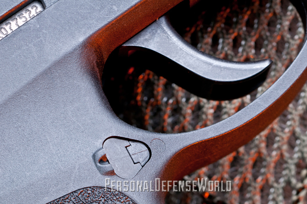 To help cut down on the pistol’s weight, the frame is aluminum alloy. The frame’s matte black Nitron finish is extremely well done and matches the finish on the slide and barrel. The rear of the frame features a short beavertail that extends past the end of the hammer and does an excellent job of protecting the web of the hand against hammer bite, especially with a high handhold. The grips are tactical gray and black Hogue G10 with very aggressive checkering for a secure hold. The front and the rear of the grip frame feature vertical serrations that aid in obtaining a firm hold. The rear grip-frame serrations are actually on the polymer mainspring housing. The area underneath the triggerguard has a slight upward indentation that helps users get a better grip. Even with my large hands I was able to get a full two fingers on the front of the grip, which aids greatly in attaining more comfort, more accurate shooting and, by keeping the gun from shifting in the hand, faster follow-up shots. Internally, the P238 features a non-captive, full-length, steel guide rod and a flat recoil spring. Flat springs purportedly provide improved cycling and longer spring life. Also very much like a 1911, the P238 features a steel internal extractor.