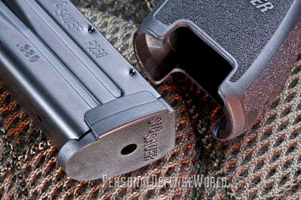The P250 Subcompact also boasts a 12+1 capacity in 9mm, 10+1 capacity in .40 S&W and 6+1 capacity in hard-hitting .45 ACP, all in a very small package. At nearly 25 ounces empty, it is hardly a pocket pistol, but it provides such a high level of versatility that it is well worth considering for concealed carry. Keeping the same dimensions but reducing the weight by more than 5 ounces is a .380 ACP subcompact P250, which has a 12+1 capacity and lower recoil.