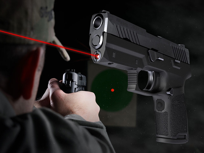 Sig Sauer Electro-Optics is introducing the new LIMA5 Laser Grip Module for 2016. Designed to fit with the P320 and P250 pistol platforms, the LIMA5 provides state-of-the-art laser targeting for the end user. As the official product listing notes, the LIMA5, which is built from the same material and features the same texture as as Sig’s standard polymer frames, integrates either a red (Oclaro) or green (Osram) laser module for accuracy when seconds count. It’s powered by a Lithium 1/3n battery in the palm swell, it features an activation button on the leading edge of the grip for easy finger actuation, and it boasts a laser targeting module that is incorporated into the pistol’s dust cover. See below for additional information.