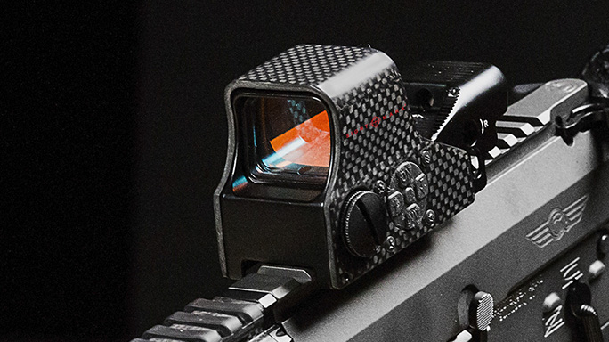 Boasting the same robust optical design as the other models in the M-Spec lineup, Sightmark’s new Carbon Fiber FMS features a carbon fiber protective hood as part of Sightmark’s 10-year anniversary, which makes it 30 percent lighter than other reflex sights out there at just 7.1 ounces.