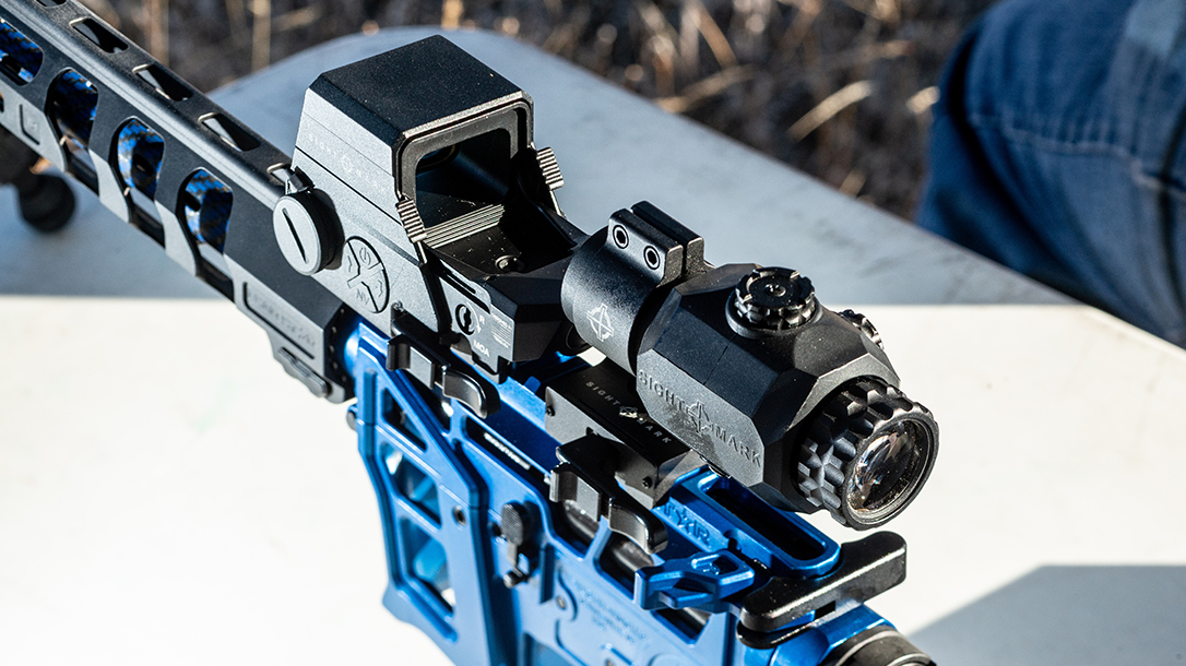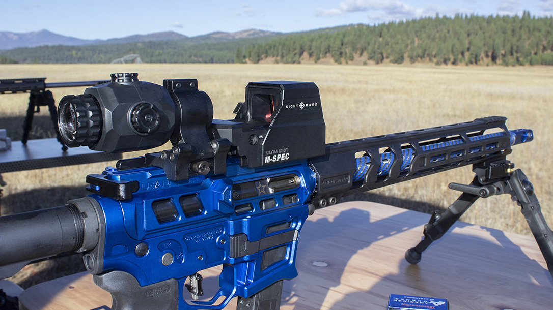 Rested on a DOA shooting bench, it was a simple task to pound steel shot after shot out to 300 yards with a lightweight 9mm AR wearing the Sightmark Ultra M-Spec.