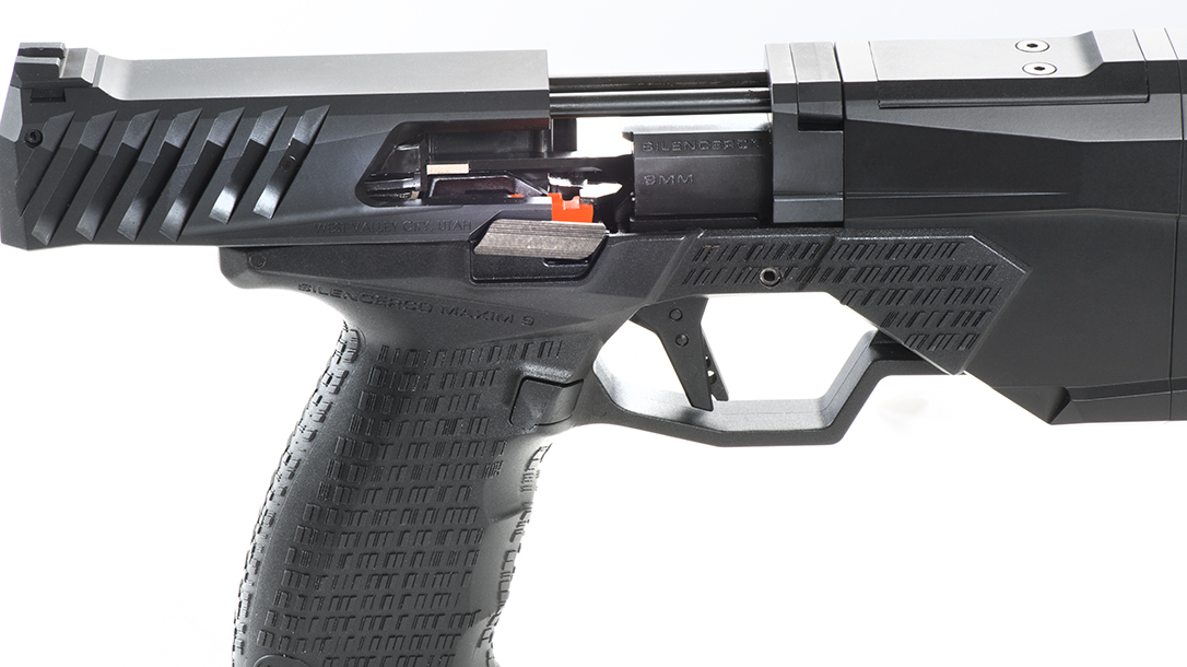 The construction concept of the Maxim 9 is similar to Sig’s P250 and P320 pistols in that it uses a polymer grip frame that encompasses an internal subchassis. This metal chassis holds the trigger mechanism, sear assembly, disconnector and suppressor baffles among other components.