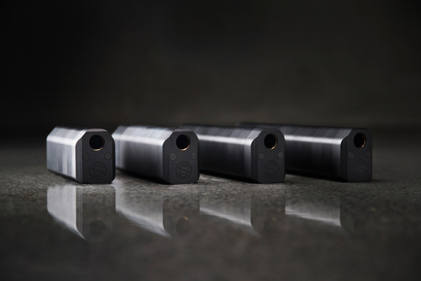 Designed as a suppressor for 12-gauge shotguns, the Salvo 12 boasts a modular design which enables the shooter to add or remove sections to balance length, weight and sound suppression needs. It arrives as a 12 inch suppressor, but can be reduced to 10, 8 and 6 inch configurations when necessary.