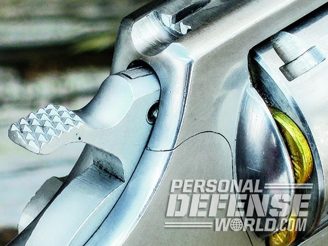 As a 1981 representative, my Model 60 shows the assorted scuffs and minor surface scratches you’d expect an honest working gun to acquire over a 35-year span of use. It also features a flash-chromed hammer and a narrow, 0.24-inch-wide, serrated “service” trigger.