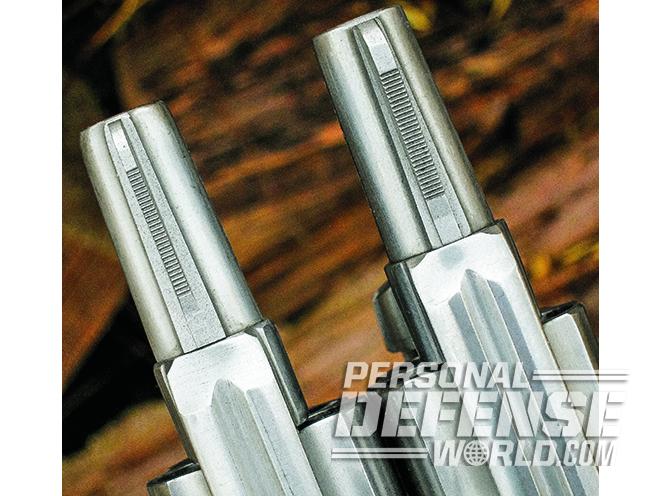 J-Frame front sights, incidentally, have varied in width over the years. The two older examples, the 60 and 649, both sport 0.1-inch-thick blades while the later 640 has a 0.13-inch-thick blade. The rear notch in the topstrap sight channel is also correspondingly wider on the 640. This was a distinctly positive evolutionary step for the J-Frame. While most consider the snubs to be largely point-and-shoot “get off me” propositions, any simple modification that allows you to reach out and touch a bit farther is not a bad thing.