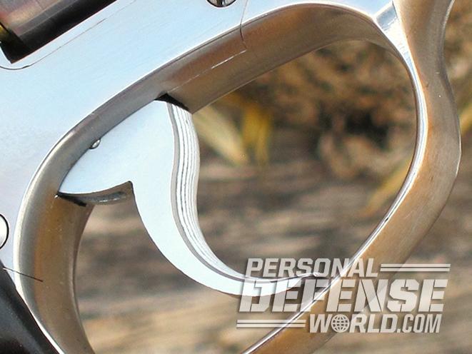 This sample features the casehardened hammer with a hammer-mounted firing pin and casehardened trigger that S&W sandwiched between the earlier 1980s-era chromed parts and the later 1990s MIM versions. The smooth-faced, 0.312-inch-wide “combat” trigger weighs more than my 8-pound trigger gauge can read, but the trigger pull is very smooth considering the smaller geometry and leverage the J-Frame has to work with. In fact, this S&W came with such a good trigger out of the box that I saw no reason then or since to bother doing any action work on it. No, it’s not as easy to shoot accurately as a single action, and it’s definitely not a 50-yard target gun, but it’s very usable within its design parameters.