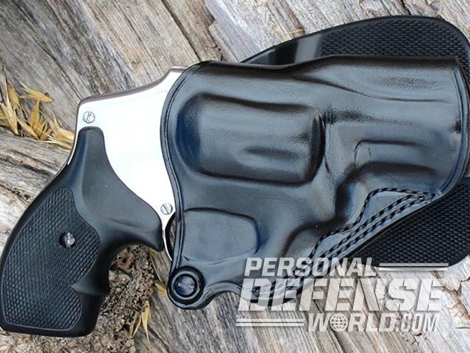 Since J-Frames of all generations and variations are still in wide circulation, leather is easy to find no matter how you choose to carry one. The Bianchi Model 5 Black Widow Belt Slide is a long-running, lightweight standard that totes a Chief’s Special securely on a belt up to 1.75 inches wide with minimal fuss and bother. These holsters are available in black or tan from safariland.com.