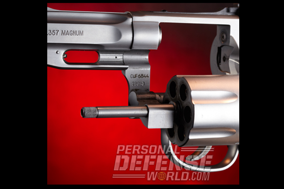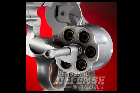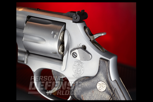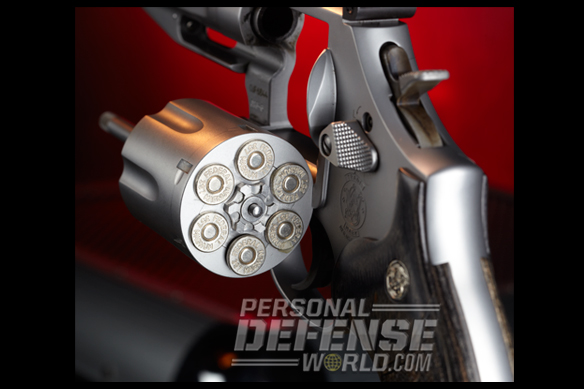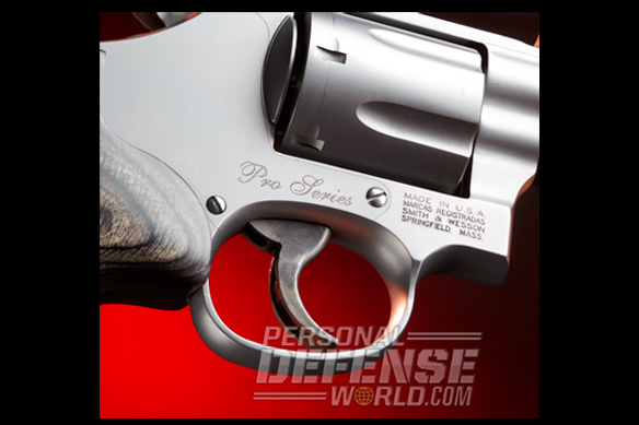 Service revolvers were invented 177 years ago, but for many shooters they are still viable choices for self-defense. The secret to the wheelgun’s longevity lies in its ease of use and in the fact that manufacturers are continually updating it. Smith & Wesson is well known for producing state-of-the-art revolvers, and one of the latest from S&W is the M686 Pro Series .357 Magnum Stock Service Revolver (SSR). The SSR is more than just another update. It sets a new standard for service revolvers. Pro Series guns blend high-tech production line manufacturing with custom features that were only available previously through the S&W Performance Center. Even though the SSR is made on the regular production line, it has chamfered charge holes, a custom 4-inch barrel with a recessed precision crown, a bossed mainspring and an ergonomic wood grip that is designed to give a high hand hold for better recoil control. All of this comes at a cost of only $160 more than the standard 4-inch, six-shot M686. That’s the average cost of about 150 rounds of premium jacketed hollow-point (JHP) ammunition.