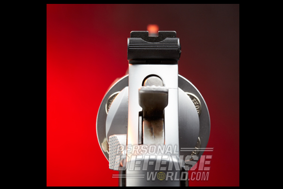 The second drill involved a simulated house clearing. The shooter opened a door into a hallway that had two simulated assailants standing behind a barrel. One assailant partially covered the other. The more exposed target offered upper body and headshots, while the second had only the head and gun arm/hand visible. Each target was double tapped from the cover of the doorway. I then moved quickly down the hall and engaged a third simulated assailant who was standing 15 yards past the end of the hallway, in an open area. The third target was double tapped. I then performed an emergency reload from cover, reacquired the target and shot twice again. The SSR’s tactical performance was excellent. All shots during both drills landed in vital areas. There was no decrease in tactical accuracy when magnum loads were used. In addition, the chamfered charge holes made reloads with the Safariland speedloader fast and easy. Combine this performance with the results of the accuracy and velocity tests, and it’s clear that the SSR is a well-rounded and very practical revolver.
