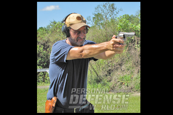 The Army L bullseye match was fired with Winchester’s 125-grain PDX1 Magnums. Tactical drills were fired with Remington’s .38 Special 130-grain FMJ load and the CorBon and Remington .357 Magnum loads. There were no misfires or mechanical problems during the drills or any other live fire tests. The SSR easily digested every load it was fed. During the bullseye match, I shot the SSR one-handed for the 25-yard slow fire, and two-handed for the 25-yard timed fire and 15-yard rapid-fire stages. Slow fire was shot in the SA mode, and the other two stages were fired DA. All shots were on target during each stage, and the best score was a 93-5X during the 15-yard, rapid-fire stage. The SSR’s 38-ounce weight handled recoil very well, and the Hogue grips provided for a very solid purchase on the gun. Two tactical drills were conducted. I did both wearing a Blackhawk thumb-break holster that I had converted from a 6-inch closed bottom holster to a 4-inch one with an open bottom. The first drill involved moving laterally off the X while drawing and then firing double or triple taps at two simulated assailants at 7 yards. One target presented body shots and the other headshots. The SSR’s slightly grip-heavy balance made for fast presentations and helped it point very well.