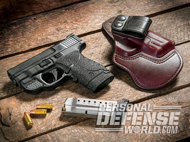 All of my polymer handguns sport some sort of grip enhancement to aid recoil control with slippery hands. For the Shield, I used Talon gun grips. Available in either rubber or granulate textures, Talon’s stick-on grip panels are available for numerous makes and models.
