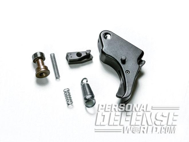 While I was certainly impressed with the M&P Shield, a few modifications were in order to obtain my idea of pistol perfection. First up was replacing the factory trigger with an Apex Tactical Duty/Carry Kit. Custom triggers offer a smoother pull than typical factory triggers, and the Apex Shield trigger is no exception—the difference is like night and day.