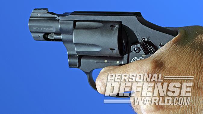 Recoil Control: Though it’s a tad lighter than the .38 Special Model 642 Centennial Airweight stainless, the M&P340 has nowhere near the kick of an 11-ounce .357 Magnum Model 340PD or the .38 Special AirLite Model 342. Yet it doesn’t sag a trouser pocket or weigh down an ankle as much as the heavier, all-steel J-Frames. Like all Centennial models, the high “horn” shape at the back of the frame allows shooters to obtain a higher grip. This reduces muzzle rise.